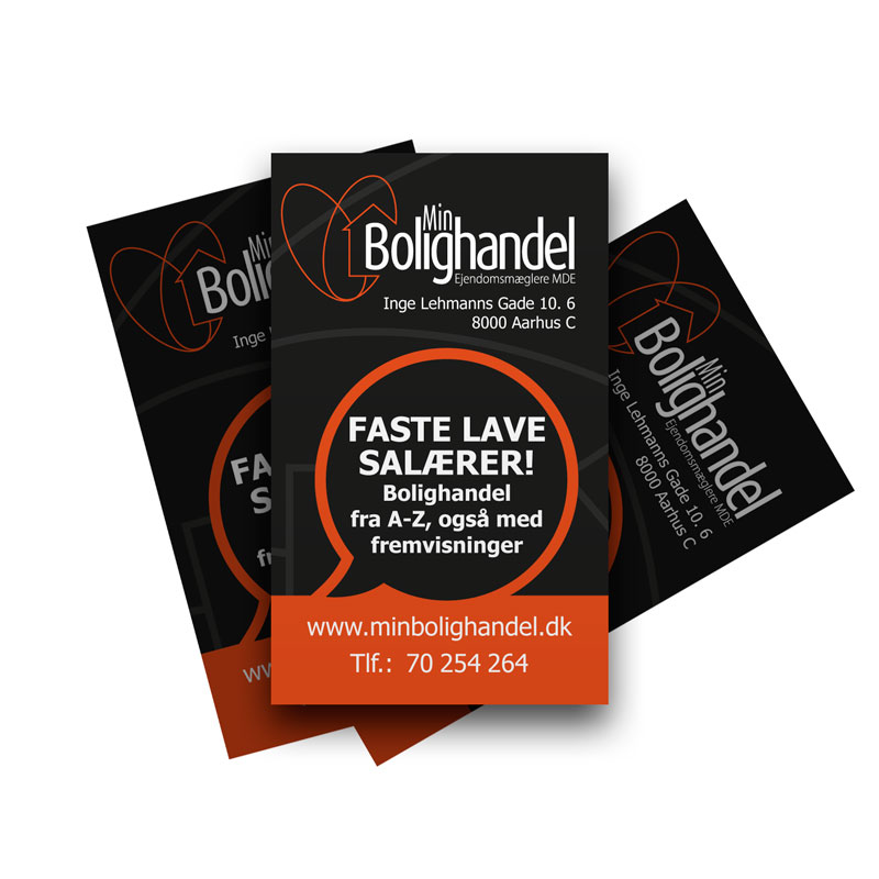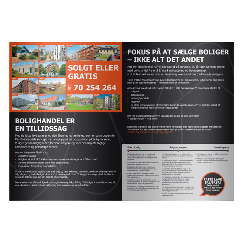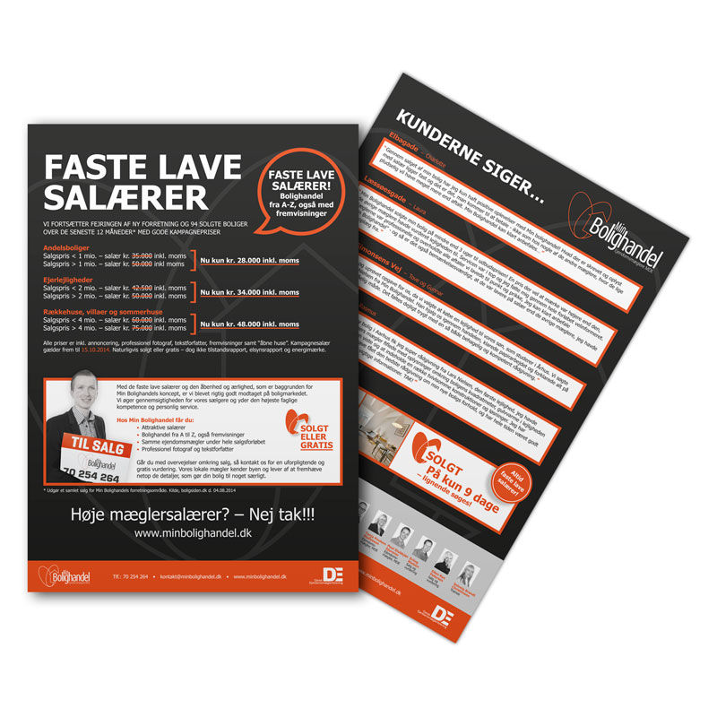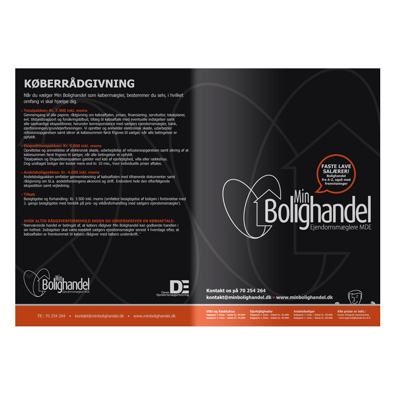 Der var ikke fastlagt en designmanual, men jeg så den kommende udvikling og anbefalede at lave materiale i tråd med den nye visuelle og lysere stil som MinBolighandel udviklede sig imod.